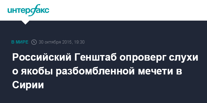 Российский Генштаб опроверг слухи о якобы разбомбленной мечети в Сирии