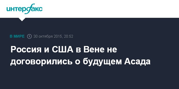 Москва. 30 октября. INTERFAX.RU - У России и США до сих пор нет согласия по судьбе президента Сирии Башара Асада, заявил глава МИД РФ Сергей Лавров.