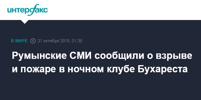 Москва. 31 октября. INTERFAX.RU - По меньшей мере 25 человек погибли в результате взрыва и вспыхнувшего пожара в ночном клубе в столице Румынии Бухаресте, сообщает BBC News со ссылкой на местные СМИ.