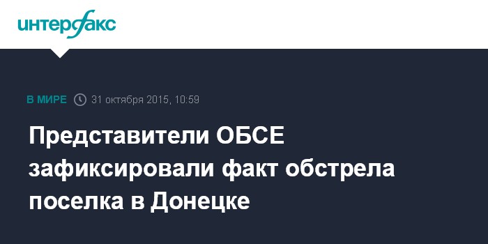 Москва. 31 октября. INTERFAX.RU - Глава Куйбышевской районной администрации Донецка Иван Приходько заявил, что представители ОБСЕ, прибывшие на место обстрела, случившегося накануне, зафиксировали факт происшествия.
