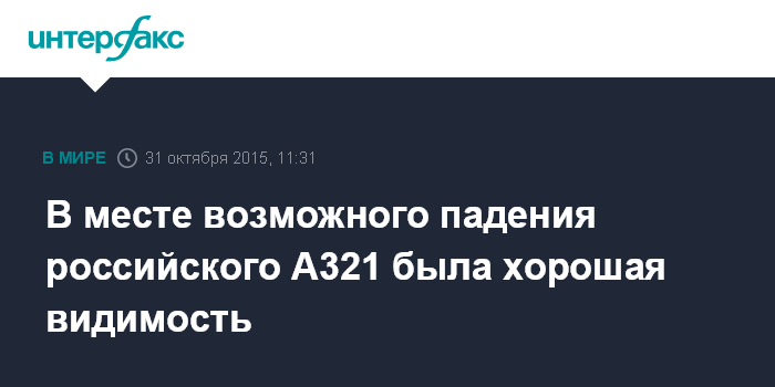 Москва. 31 октября. INTERFAX.RU - Над Северным Синаем, где, по некоторым данным, мог пропасть российский авиалайнер, сложились нормальные погодные условия, сообщили "Интерфаксу" в Ситуационном центре Росгидромета.