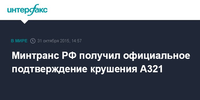 Минтранс РФ получил официальное подтверждение крушения А321