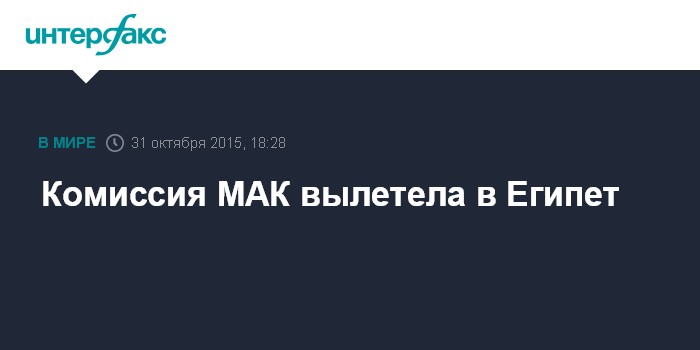 Москва. 31 октября. INTERFAX.RU - Межгосударственный авиационный комитет создал комиссию для расследования авиакатастрофы в Египте, члены комиссии вылетели в Каир, говорится в сообщении на сайте МАК.