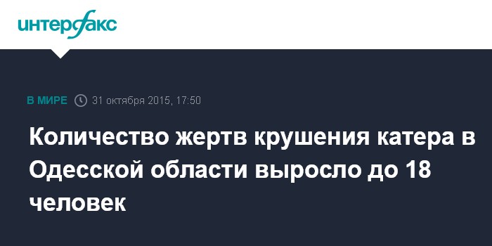 Москва. 31 октября. INTERFAX.RU - Количество жертв крушения катера "Иволга" в Затоке Одесской области продолжает расти.