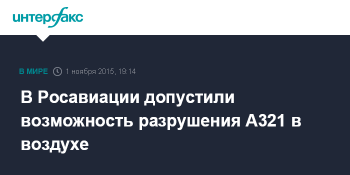 В Росавиации допустили возможность разрушения А321 в воздухе
