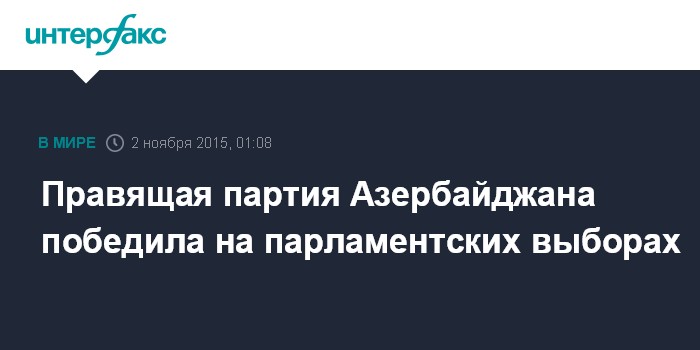 Москва. 2 ноября. INTERFAX.RU - Правящая в Азербайджане партия "Ени Азербайджан" ("Новый Азербайджан") одержала победу на состоявшихся 1 ноября очередных парламентских выборах, завоевав большинство из 125 мест в Милли Меджлисе, свидетельствуют предварительные данные Центризбиркома республики.