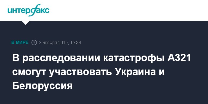 В расследовании катастрофы А321 смогут участвовать Украина и Белоруссия