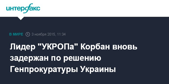 Лидер "УКРОПа" Корбан вновь задержан по решению Генпрокуратуры Украины