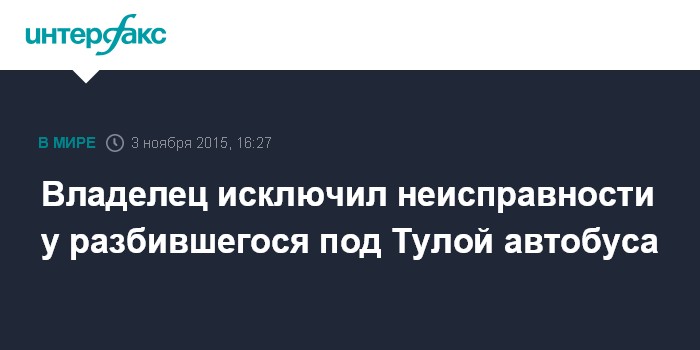 Москва. 3 ноября. INTERFAX.RU - Собственник армянской компании "Кинг Делюкс" Артур Арутюнян исключил версию о технической неисправности принадлежащего этой компании автобуса, попавшего в ДТП в Тульской области в России.