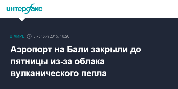 Москва. 5 ноября. INTERFAX.RU - Аэропорт на индонезийском острове Бали остается закрытым минимум до вечера пятницы в связи с большой концентрацией в воздухе пепла, выбрасываемого вулканом Ринджани на соседнем острове Ломбок, говорится в распространенном коммюнике Минтранспорта Индонезии.