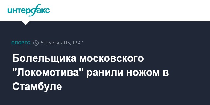 Москва. 5 ноября. INTERFAX.RU - Россиянин, приехавший в Стамбул на матч четвертого тура группового этапа Лиги Европы УЕФА между турецкии "Бешикташем" и московским "Локомотивом", получил два ножевых ранения в драке с неизвестными.