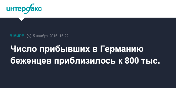 Москва. 5 ноября. INTERFAX.RU - Не менее 758 тысяч мигрантов и беженцев прибыли с начала 2015 года в Германию в поисках убежища, сообщили в четверг в МВД этой страны.