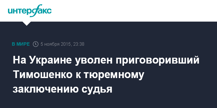 На Украине уволен приговоривший Тимошенко к тюремному заключению судья
