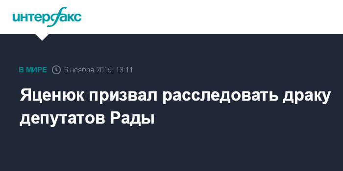Москва. 6 ноября. INTERFAX.RU - Премьер-министр Украины, глава политсовета партии "Народный фронт" Арсений Яценюк заявляет о необходимости максимально полного и быстрого расследования всех обстоятельств инцидента между замглавы фракции "Народного фронта" Андреем Тетеруком и нардепом от "Батькивщины" Александрой Кужель.