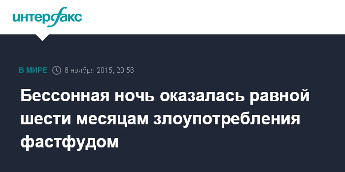 Бессонная ночь оказалась равной шести месяцам злоупотребления фастфудом
