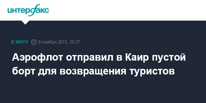 Аэрофлот отправил в Каир пустой борт для возвращения туристов