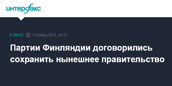 Москва. 7 ноября. INTERFAX.RU - Партии коалиции Финляндии договорились о сохранении правительства и проведении реформ в области социальных услуг и здравоохранения.