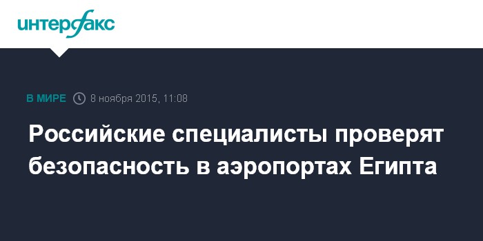 "Могу сказать, что для проведения аудита безопасности в египетских аэропортах уже первая группа вылетела и вместе с египетскими коллегами будет проводить в ближайшие дни этот аудит. Вторая группа вылетает сегодня", - сказал он.