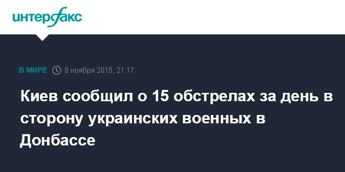 Киев сообщил о 15 обстрелах за день в сторону украинских военных в Донбассе