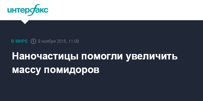 Москва. 9 ноября. INTERFAX.RU - Исследователи из США улучшили рост помидоров, опрыскивая листья наночастицами оксида титана и оксида цинка, пишет сайт N+1 со ссылкой на журнал Metallomics.