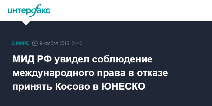 МИД РФ увидел соблюдение международного права в отказе принять Косово в ЮНЕСКО