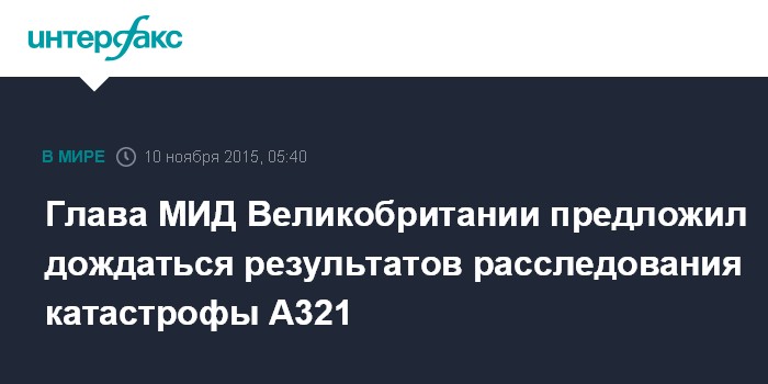 Москва. 10 ноября. INTERFAX.RU - Министр иностранных дел Филип Хаммонд считает, что окончательные выводы о причинах крушения российского самолета над Синаем должны сделать российские и египетские эксперты.