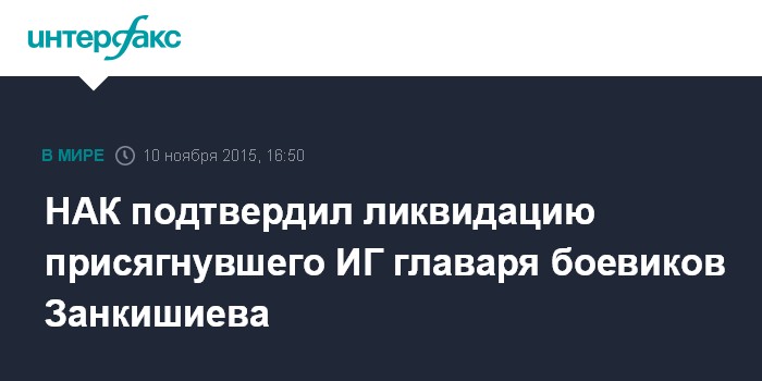 НАК подтвердил ликвидацию присягнувшего ИГ главаря боевиков Занкишиева