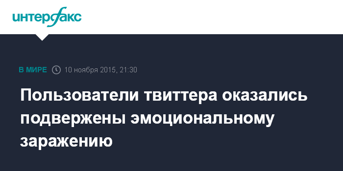 Пользователи твиттера оказались подвержены эмоциональному заражению