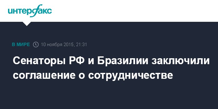 Москва. 10 ноября. INTERFAX.RU - Совет Федерации РФ и федеральный сенат Национального конгресса Бразилии подписали соглашение о развитии межпарламентского сотрудничества