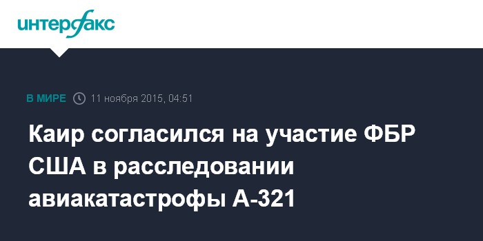 Как сообщалось, ФБР предложило России и Египту помощь криминалистов в расследовании причин крушения российского авиалайнера, о чем сообщил журналистам представитель бюро Джош Кэмпбелл.