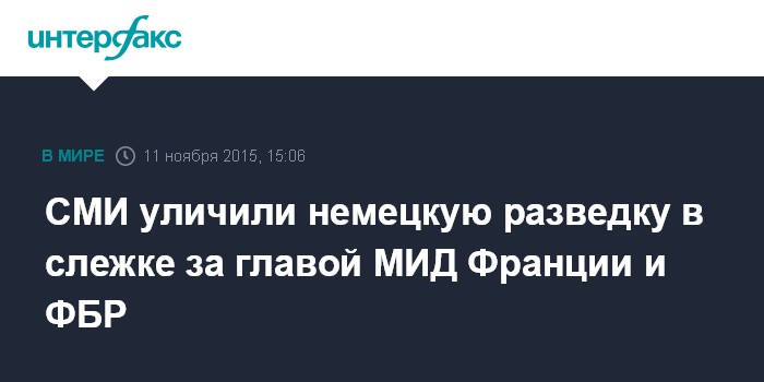 Москва. 11 ноября. INTERFAX.RU - Внешняя разведка Германии вела слежку за министром иностранных дел Франции Лораном Фабиусом, ФБР и Детским фондом ООН (ЮНИСЕФ), сообщило в среду Общественное радио Берлина со ссылкой на источники.