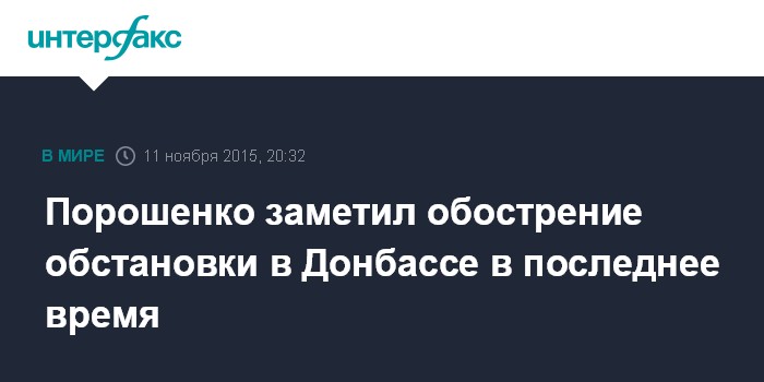 Москва. 11 ноября. INTERFAX.RU - Президент Украины Петр Порошенко констатирует, что ситуация в Донбассе в последнее время обострилась, риски и угрозы национальной безопасности и территориальной целостности страны чрезвычайно высоки.