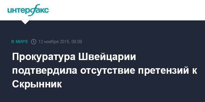 Прокуратура Швейцарии подтвердила отсутствие претензий к Скрынник