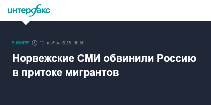 Москва. 12 ноября. INTERFAX.RU - Норвежские СМИ обвинили Москву в том, что она умышленно создает условия для роста потока мигрантов из стран Ближнего Востока и Африки, которые транзитом через Россию попадают в Норвегию.