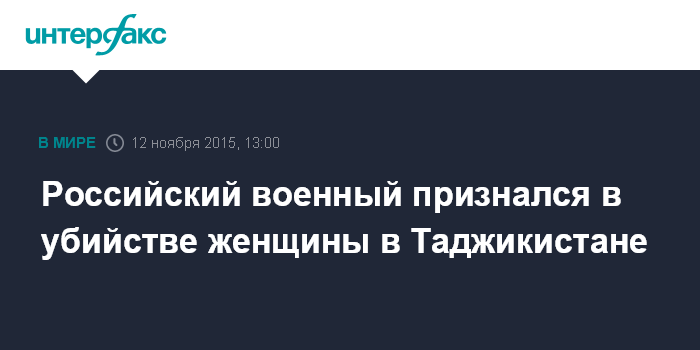Москва. 12 ноября. INTERFAX.RU - Правоохранительные органы Таджикистана и России во взаимодействии с командованием 201-й военной базы раскрыли убийство местной жительницы, по подозрению в котором был задержан российский военнослужащий. Об этом сообщают местные СМИ со ссылкой на источник в совместной следственной группе.