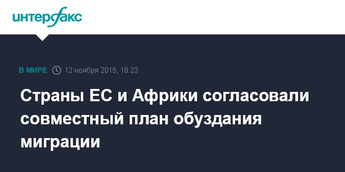 Москва. 12 ноября. INTERFAX.RU - Участники завершившегося в четверг в Валлетте (Мальта) международного саммита по миграции, руководители стран Европы и Африки объявили о согласовании перспективного плана действий по совместному обузданию миграционных потоков и преодолению их последствий.