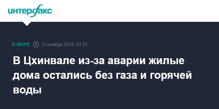 Москва. 13 ноября. INTERFAX.RU - Более сотни жилых домов в Цхинвале (Южная Осетия) остались без газоснабжения в результате аварии на линии газопровода.