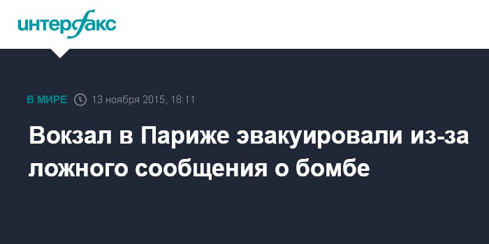 Москва. 13 ноября. INTERFAX.RU - Сотрудники полиции эвакуировали в пятницу пассажиров из Лионского вокзала в Париже из-за оказавшегося ложным сообщения о бомбе, сообщает французское телевидение.