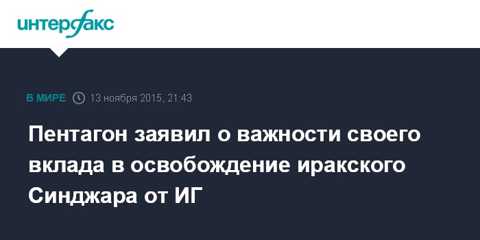 Пентагон заявил о важности своего вклада в освобождение иракского Синджара от ИГ