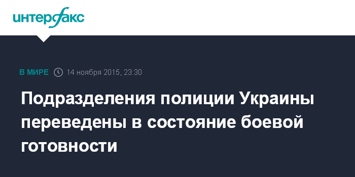 Москва. 14 ноября. INTERFAX.RU - Подразделения национальной полиции Украины переведены в состояние боевой готовности, заявляет советник министра внутренних дел Зорян Шкиряк.