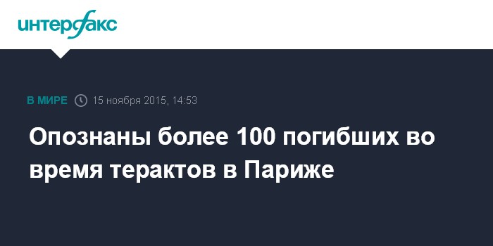 Как сообщалось, вечером 13 ноября в Париже произошла серия скоординированных терактов - стрельба на улицах и в кафе из автоматического оружия, взрывы, в том числе террористов-смертников, захват заложников в концертном зале. В результате атак погибли не менее 129 человек и 352 были ранены, 99 пострадавших находятся в критическом состоянии. Теракт стал самым кровопролитным за историю Франции.