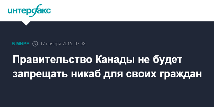 Москва. 17 ноября. INTERFAX.RU - Действующее правительство Канады отказалось подавать апелляцию по делу о возможности носить никаб для лиц, получающих гражданство, сообщила во вторник BBC News.