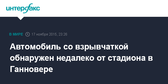 Автомобиль со взрывчаткой обнаружен недалеко от стадиона в Ганновере