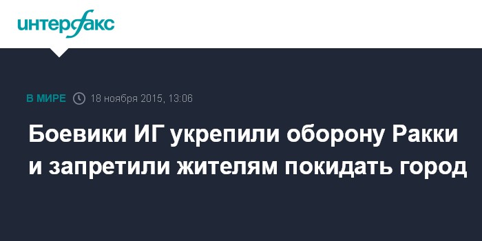 Москва. 18 ноября. INTERFAX.RU - Группировка "Исламское государство" (запрещенная в России) укрепляет оборону для отражения возможного наступления на их негласную столицу Ракку на фоне усиливающихся авиаударов антиигиловской коалиции по этому городу, ставших своего рода возмездием за парижские теракты 13 ноября, сообщает в среду агентство Associated Press.