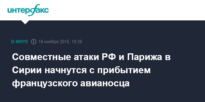 Ранее сообщалось, что французский авианосец "Шарль де Голль" с 28 боевыми самолетами и пятью вертолетами на борту покинул порт города Тулона и направился в сторону Сирии, где его планируют использовать в операциях против "Исламского государства". Ожидается, что авианосец и сопровождающие его корабли прибудут в Восточное Средиземноморье через три дня.