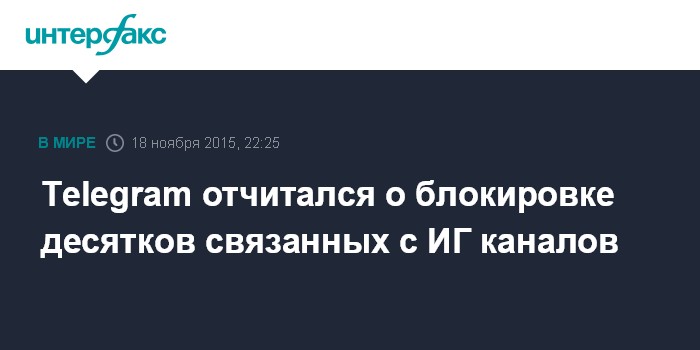 Москва. 18 ноября. INTERFAX.RU - Telegram только на этой неделе заблокировал 78 каналов, "связанных с ИГИЛ", сообщил мессенджер на своей официальной странице.