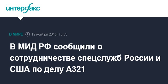 В МИД РФ сообщили о сотрудничестве спецслужб России и США по делу А321