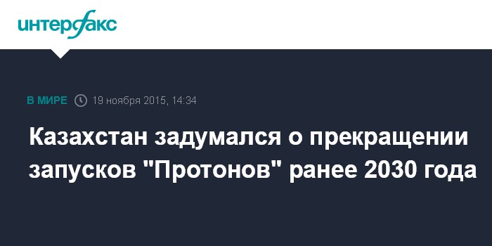 Москва. 19 ноября. INTERFAX.RU - Казахстан рассчитывает к 2030 году прекратить пуски с космодрома Байконур ракет-носителей "Протон", заявил глава аэрокосмического комитета (Казкосмос) Министерства по инвестициям и развитию Талгат Мусабаев.