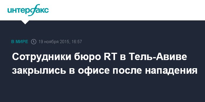 Ранее сайт RT сообщил, что неизвестный мужчина напал на офис телеканала RT в Тель-Авиве.
