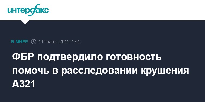 Москва. 19 ноября. INTERFAX.RU - ФБР предложило коллегам из России и Египта помощь в расследовании крушения российского самолета над Синаем, в частности, в сфере криминалистической экспертизы, и до сих пор готово оказать такое содействие.